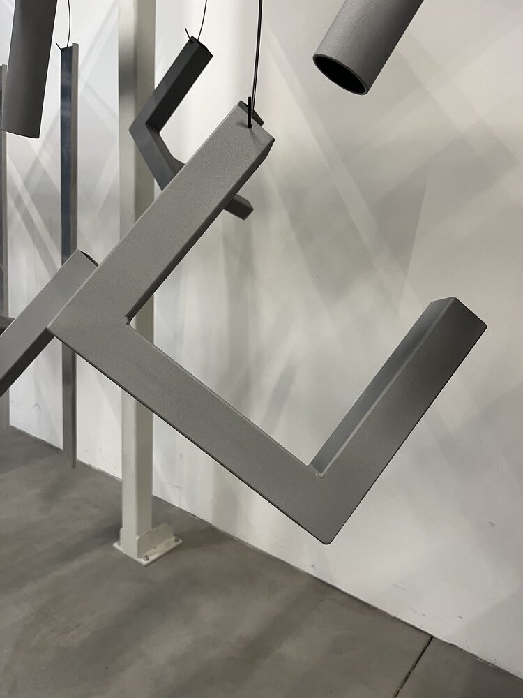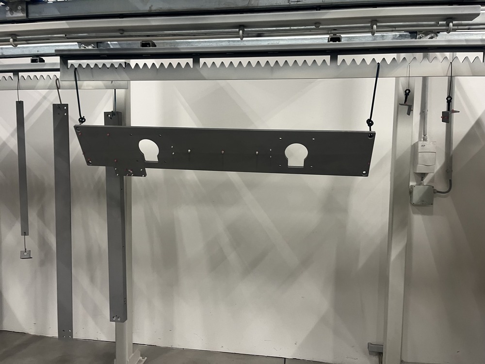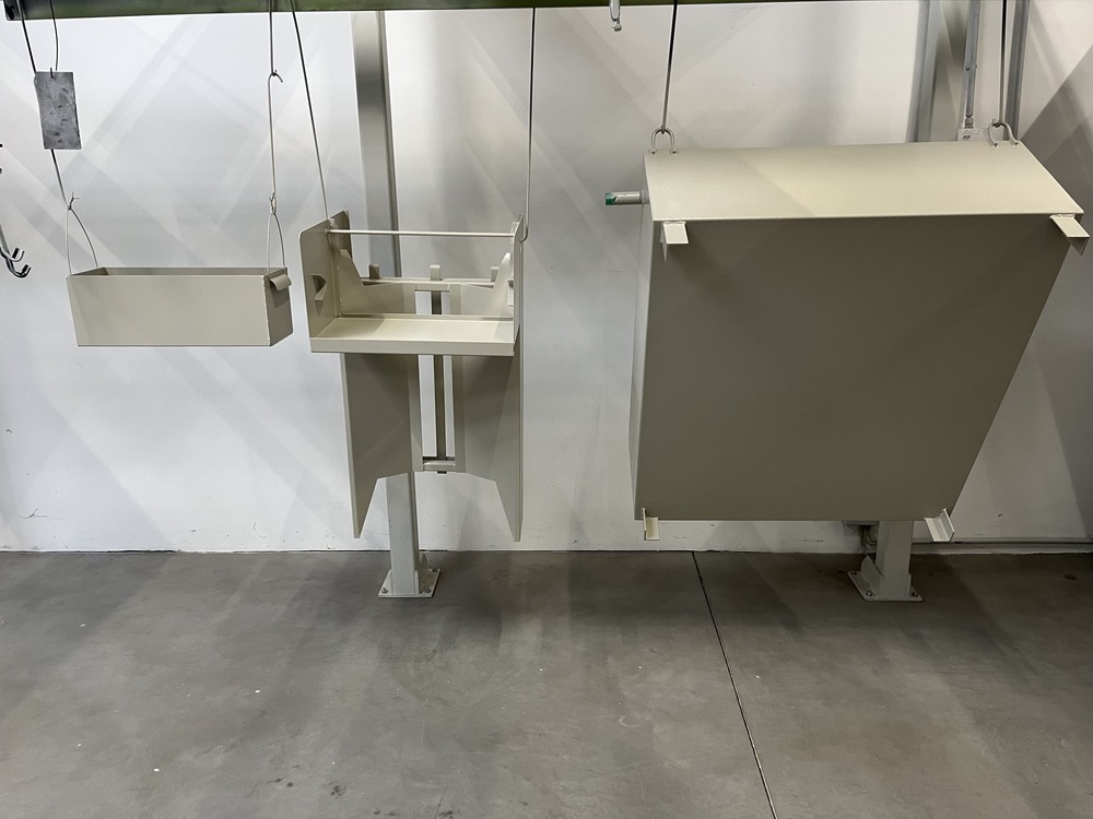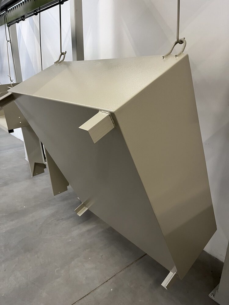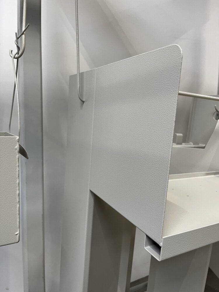 Anschließend wird der Pulverlack elektrostatisch auf das Werkstück aufgebracht. Durch die elektrische Aufladung haftet das Pulver gleichmäßig auf der Oberfläche – auch an Kanten und schwer zugänglichen Stellen.