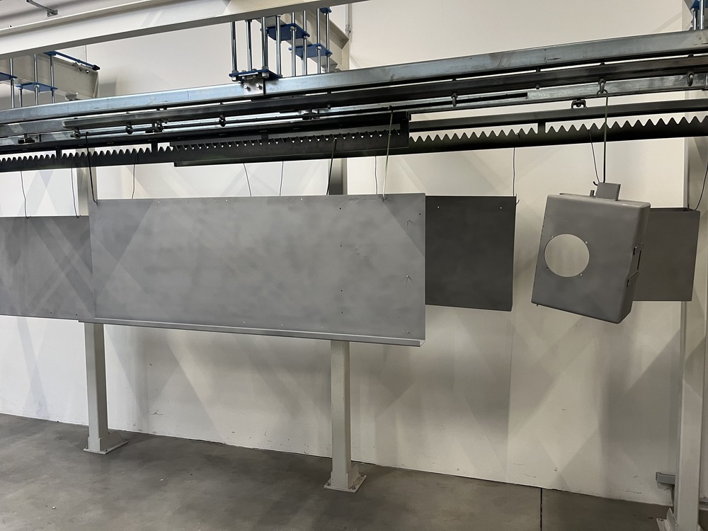 Das beschichtete Werkstück wird danach in einem Einbrennofen erhitzt. Dabei schmilzt das Pulver, vernetzt sich und bildet eine widerstandsfähige, gleichmäßige Beschichtung mit hoher mechanischer und chemischer Beständigkeit.